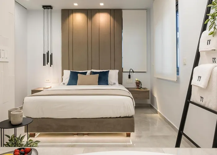 1-pokojowy Pi Suite Project Smart Living Chania położony jest w dzielnicy Stare Miasto, 18 min jazdy od lotniska Kreta Chania. Goście mogą zrelaksować się i podziwiać widoki na ogród z patia w apartamencie o powierzchni 51 m².